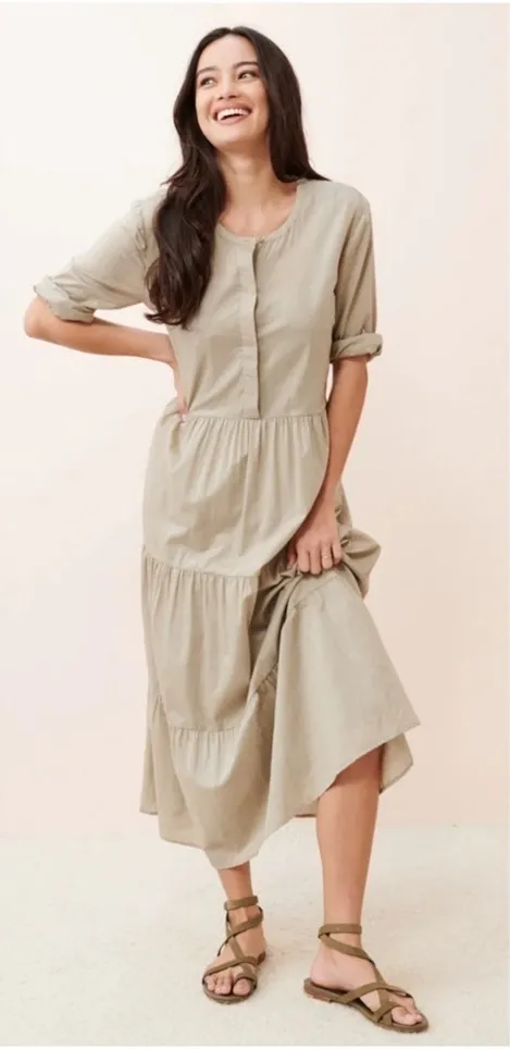 Jenni Kayne James Dress in Willow, New with Out Tags Size XS We gave the James Dress a slight update-now with a new, longer fit, this is the dress you don't want to miss. This lightweight cotton linen dress is modeled after its namesake top, making it easy, billowy, and ultra-comfortable as can be. 88% cotton, 12% linen. Made in China. Hits just above the ankle. Tiers make for a relaxed feminine fit that's easy to wear anywhere. Please note Brand tags have been cut to prevent store returns