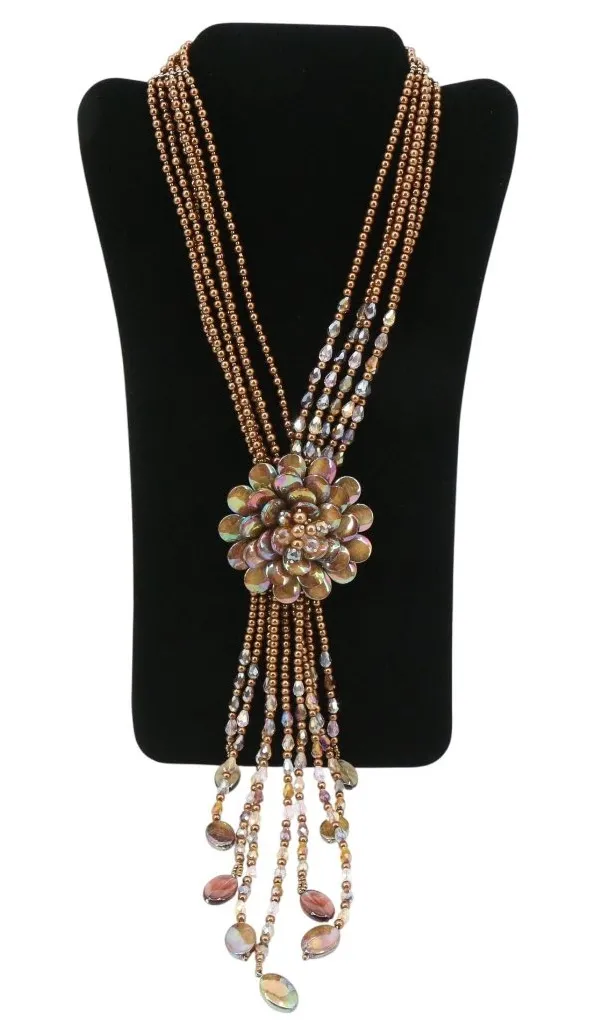 New Joan Rivers Starlet Style Beaded Flower Cluster Fringe Neutral Brown Statement Necklace Color:... Show more
