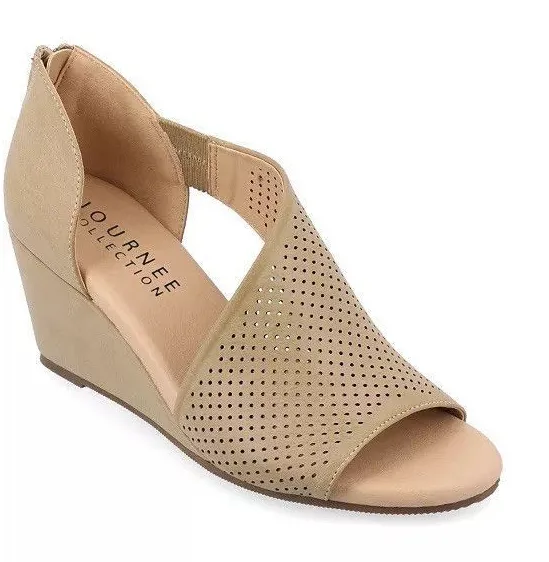 Your wardrobe is not complete without the Aretha from Journee Collection. This gorgeous D'Orsay wedge style is accented with a unique perforated faux leather design. Available in Medium and Wide widths. Features Upper material - faux leather or faux leather- polyurethane Toe style - peep Cushioned footbed - memory foam Heel height - 2.75" wedge Closure type - back heel zip Available in extended widths Faux Leather - Polyurethane, Footbed - Memory Foam Spot Clean Imported Shipping & Returns Enjoy a longer window to return most of your holiday purchases. See our Extended Holiday Return Policy to see if this item qualifies. California and Minnesota customers call 1-800-289-6229 for Free Shipping information. For complete details, see our Shipping and Returns policies.
