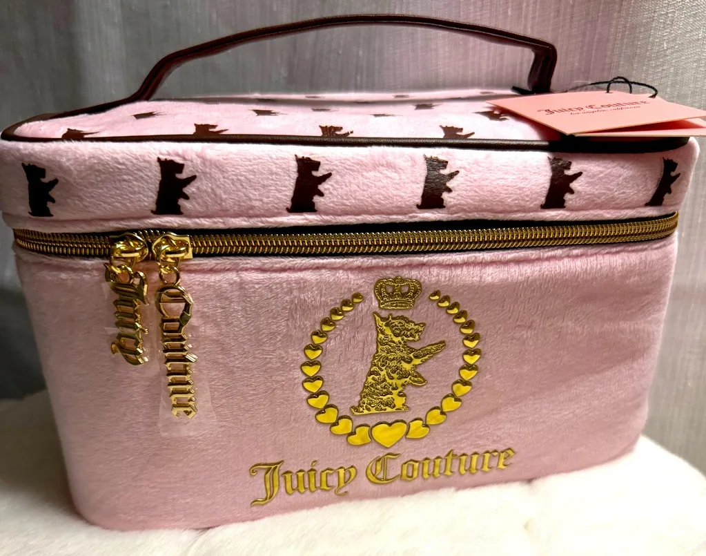 NEW Juicy Couture Travel Cosmetics Bag in pink felt. This super cute cosmetics bag comes with a meta... Show more