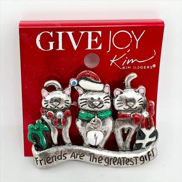 NEW Kim Rogers Give Joy Silver Tone Cat Friends Christmas Brooch Pin - $15 New With Tags - From Amanda