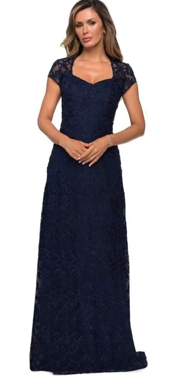 La Femme - 27951 Lace V Neck Sheath Mother of the Bride Dress in Navy Sz 16 $598 Flattering Sheath s... Show more