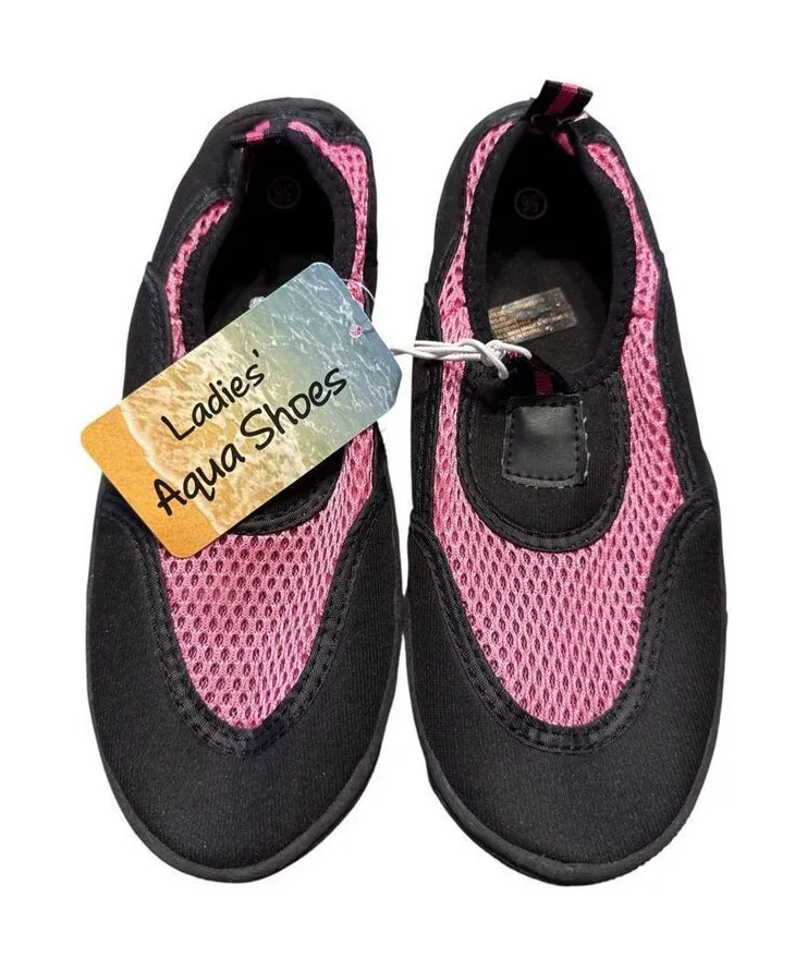 NEW Ladies Aqua Shoes Size M (5-6) Swimming Shoes Black & Pink Beach Pool Play - $10 New With Tags - From T