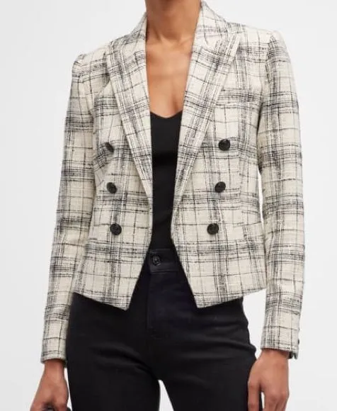 NEW L'AGENCE Brooke Tweed Double-Breasted Cropped Blazer Size 12 Wool NWOT Black - $450 - From susie