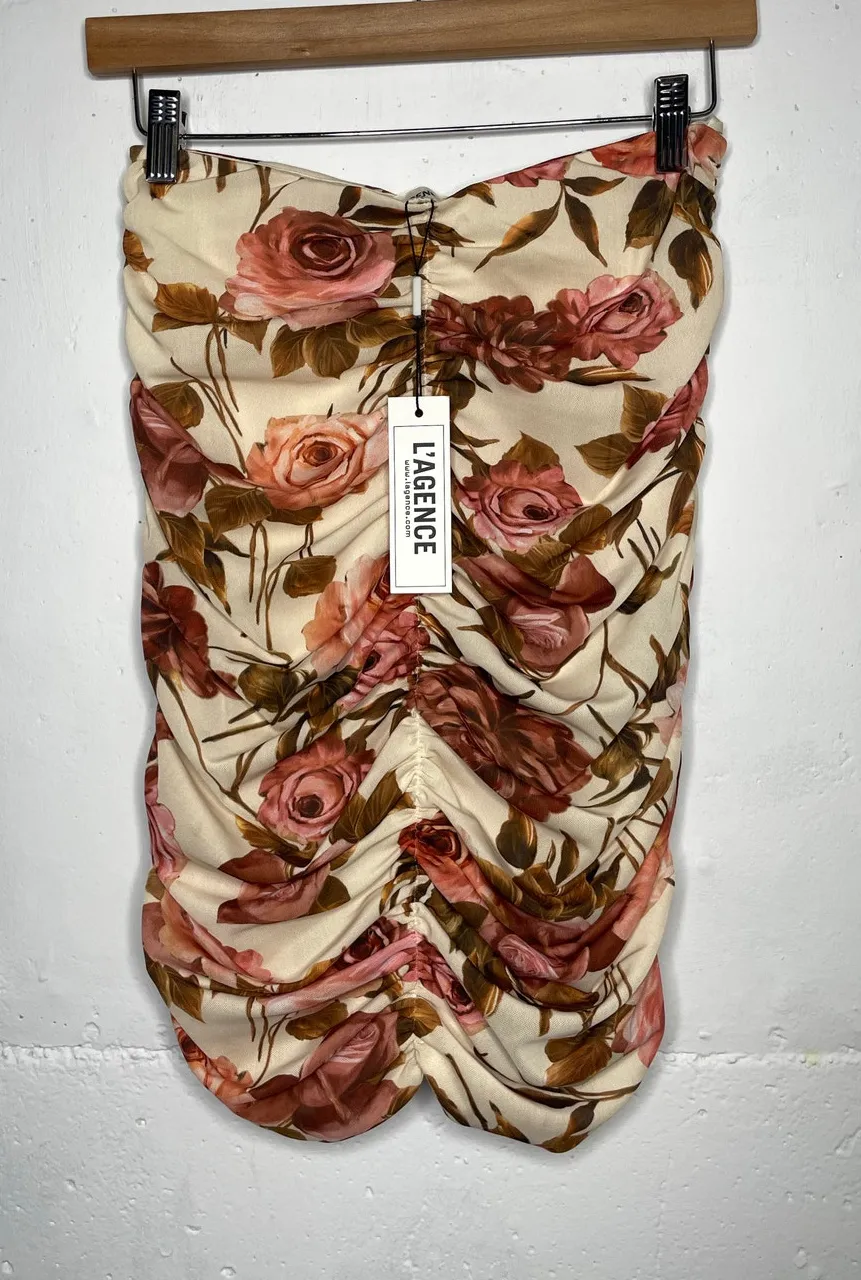 NEW L'agence Mini Skirt Size Small Ruched, Veronica Shirred Floral Rose Print Red - $35 New With Tags - From ThriftyKat