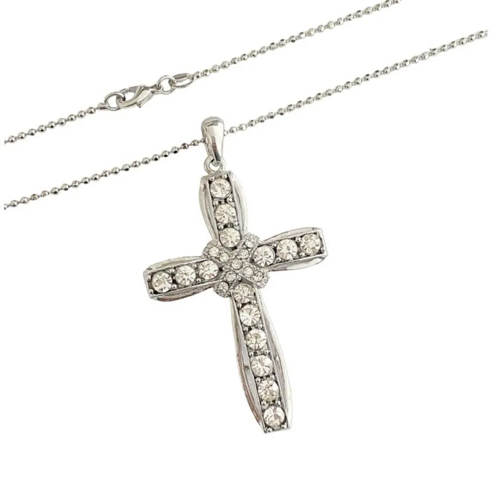 NEW Large Clear Crystal Silver Plated Cross 18” Necklace Grunge Religious - $12 New With Tags - From patty