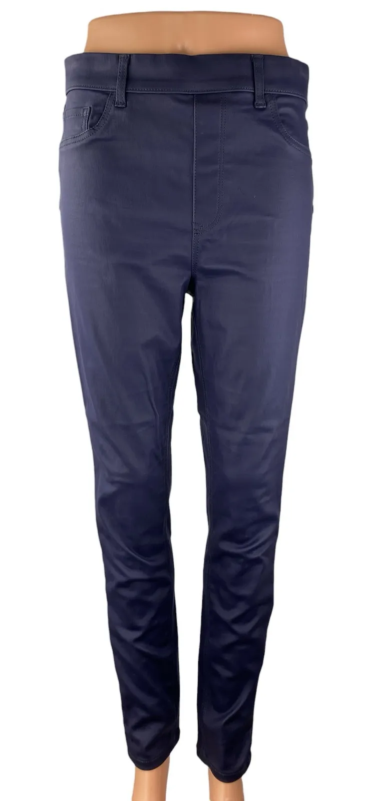 New Look Emilee Blue Coated Vegan Faux Leather High Rise Skinny Jeggings Pants Size 10 Size: 10 Condition: Very Good Rise: 11” Waist: 30” Inseam: 27” *Measurements are taken lying flat. We double the flat lay measurements of the waist. **The mannequin is a size small / plus size mannequin is a size extra large.