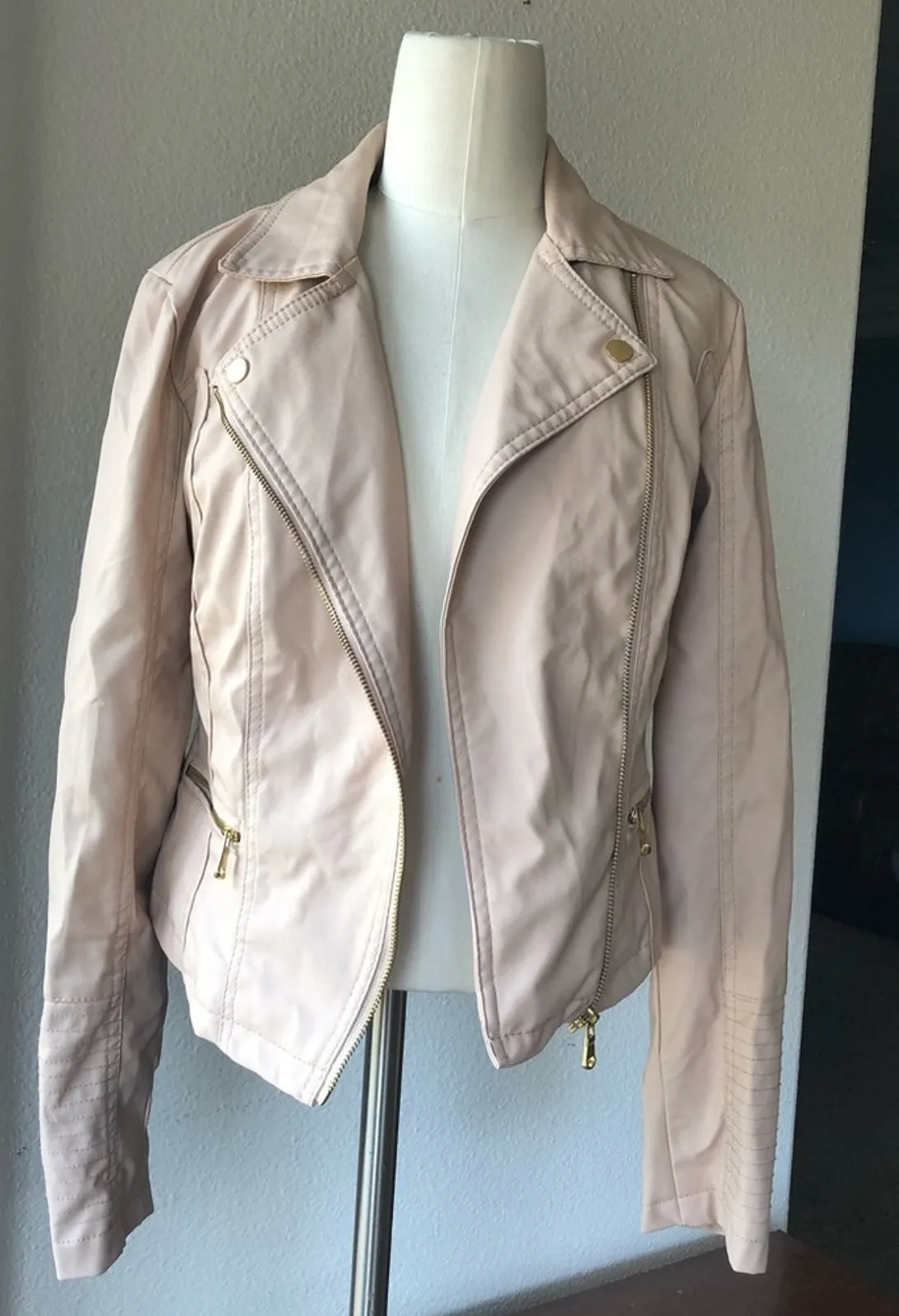 New Look faux leather moto jacket light pink street wear Pink in color sz s coquette Valentine's Da... Show more