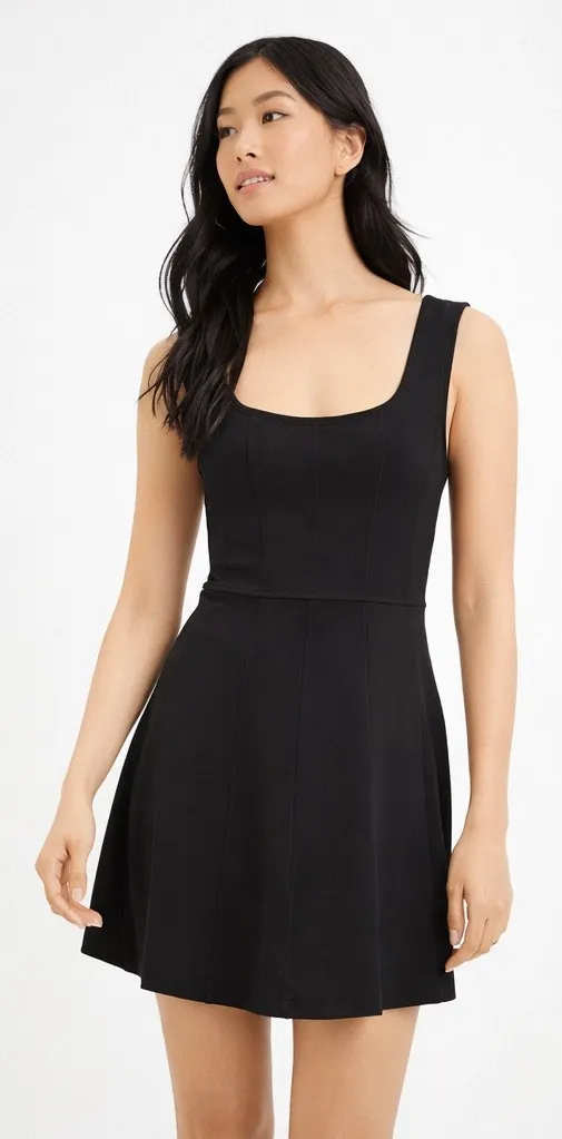 Lou & Grey black fit & flare tank mini dress in a sleek, stretchy athleisure fabric. Features a squa... Show more