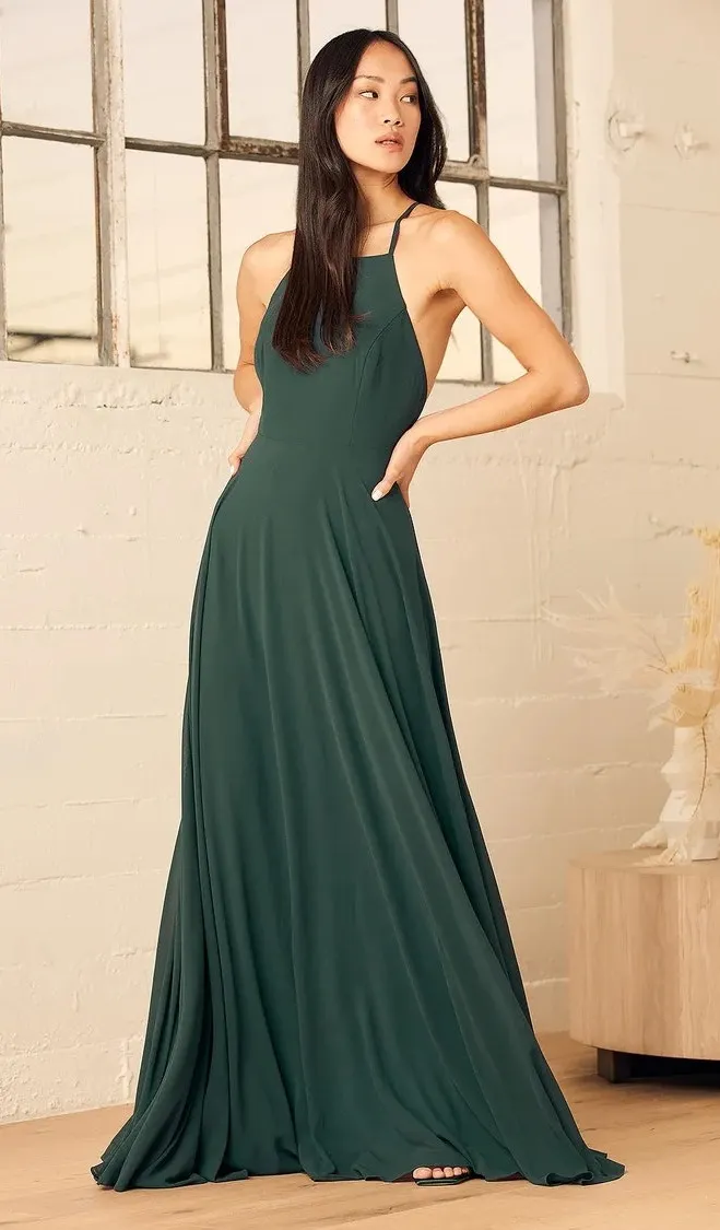NEW Lulus Mythical Kind of Love Green Chiffon Sleeveless Back Zip Cami Camisole Maxi Tank Prom Eveni... Show more