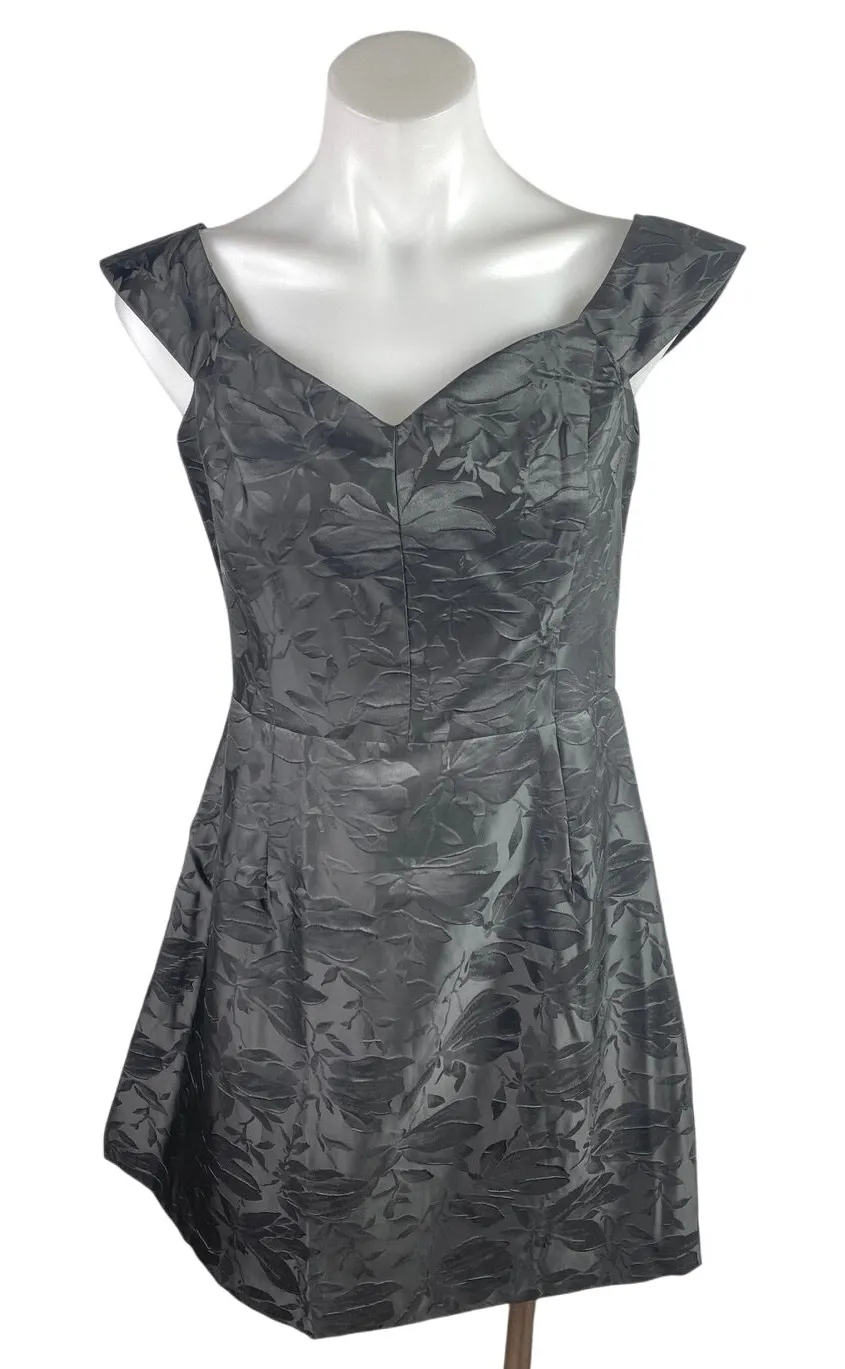 NEW Lulus You're All Heart Black Jacquard Satin Off Shoulder Back Zip Mini A-Line Dress Size L Size... Show more