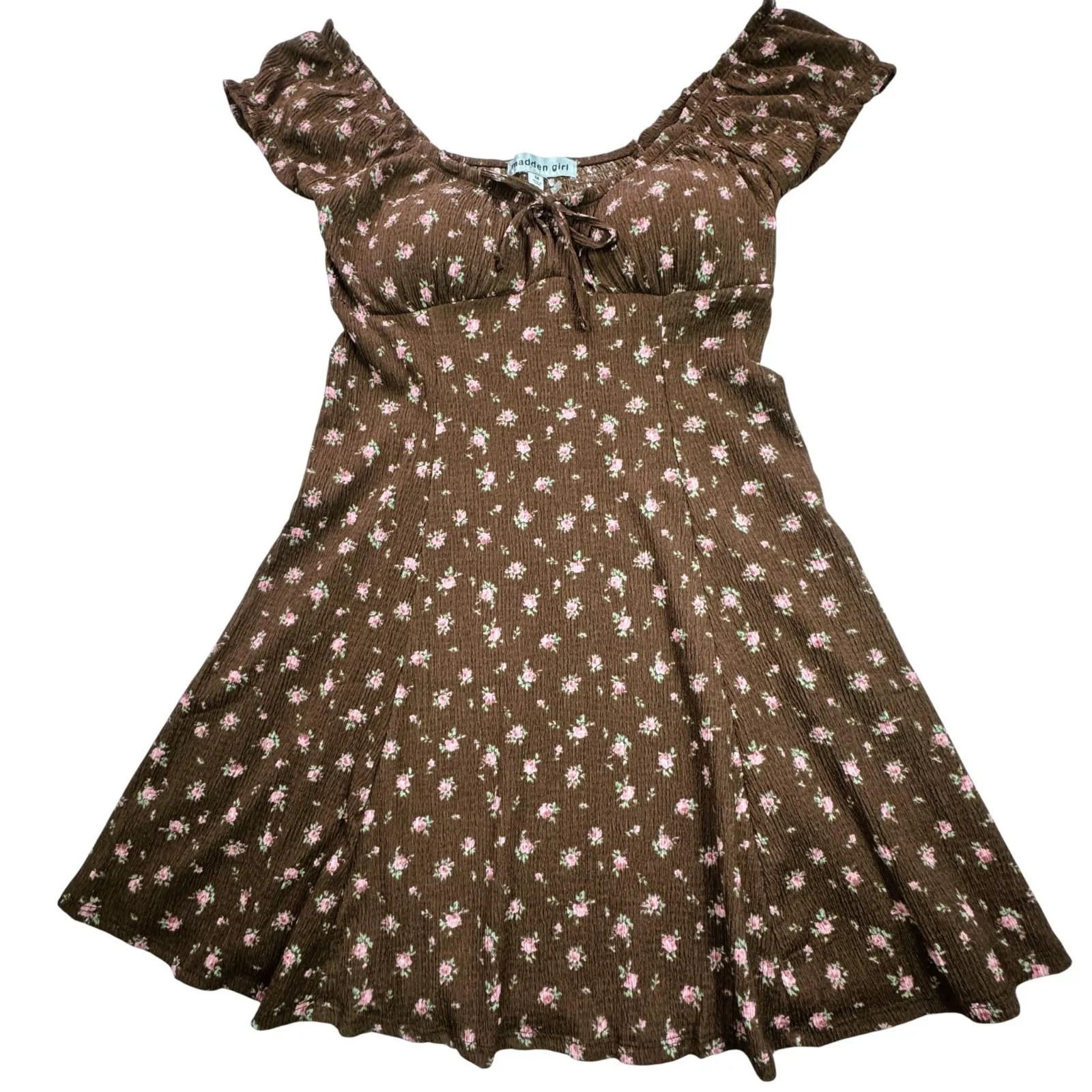 New With Tag Madden Girl Brown Pink Floral Fit and Flare Dress Junior's Size Medium Cottagecore Brow... Show more