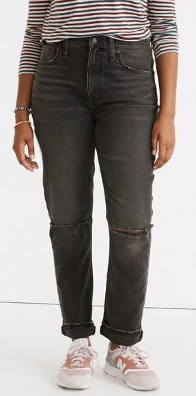 NEW Madewell The High-Rise Slim Boyjean in Caton Wash: Ripped-Knee Edition, women's size 28 The cut... Show more