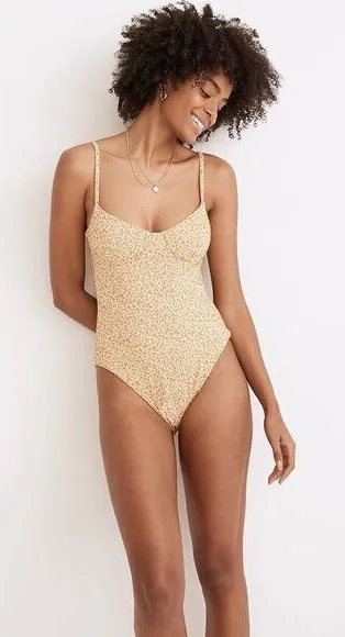 Madewell Second Wave Floral Jacquard Seamed One-Piece Swimsuit, XXL Color: Lighthouse Size: XXL Ma... Show more