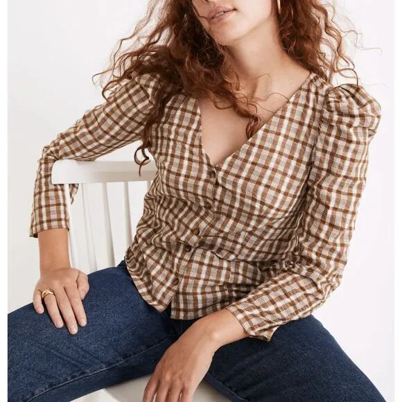 New! Madewell Westover Top in Sandown Plaid weathered olive, size 6 New with tags! Have a statement-... Show more