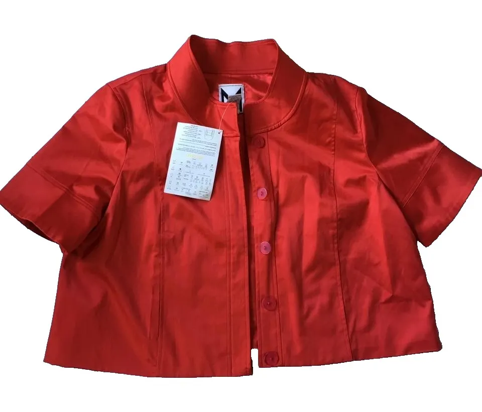 New Marc Bouwer Cropped Blazer Jacket Women L 14 16 Red Swing Work Short Sleeve Condition - New wit... Show more