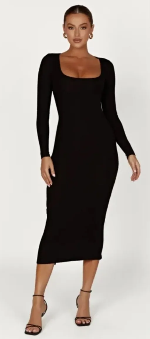 NEW Meshki Sierra Scoop Neck Long Sleeve Midi Dress Ribbed Black Size Small - $75 New With Tags - From BLuxe