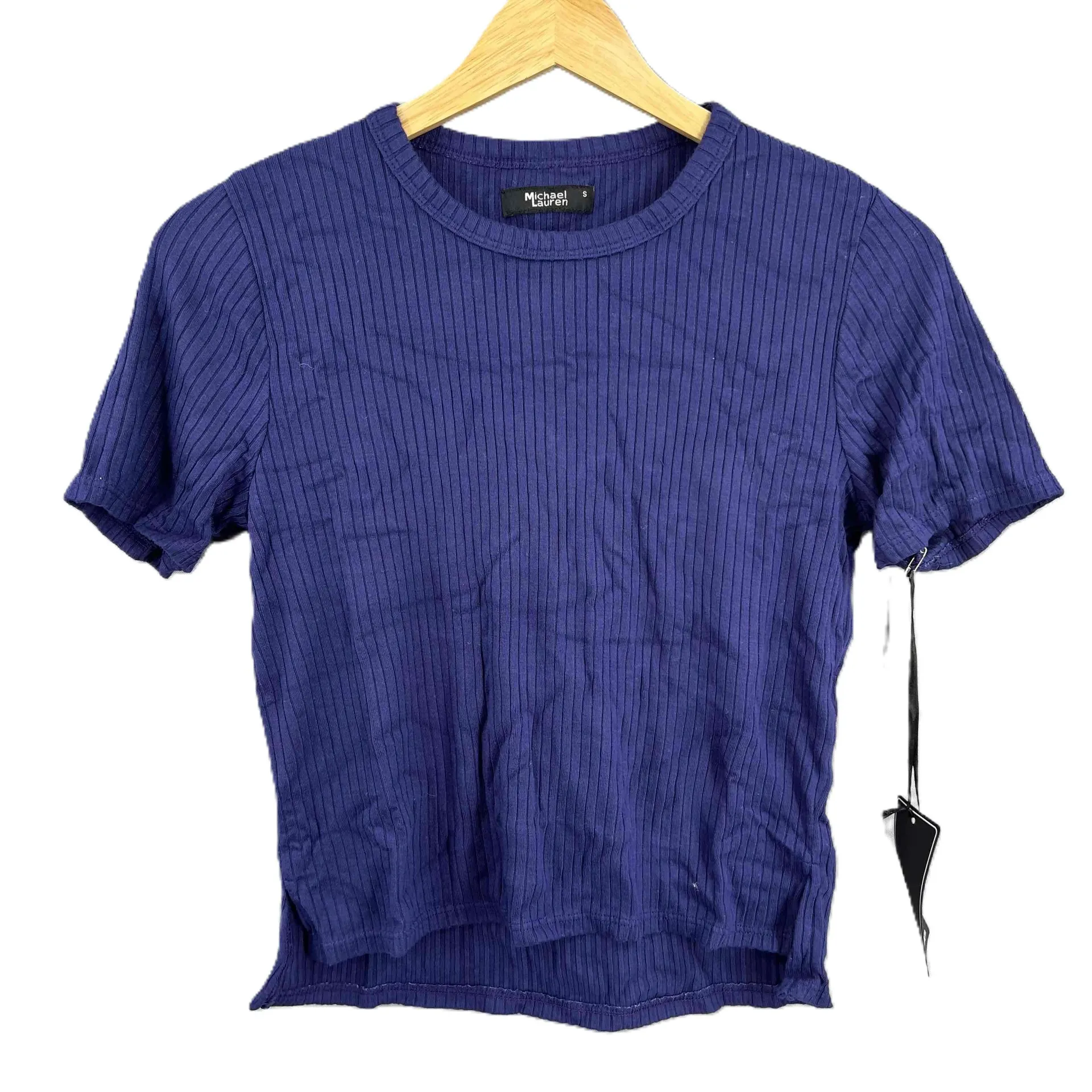 Michael Lauren Purplish Blue Short Sleeve Ribbed Texture Cropped Tee Womens Small Chic and comforta... Show more