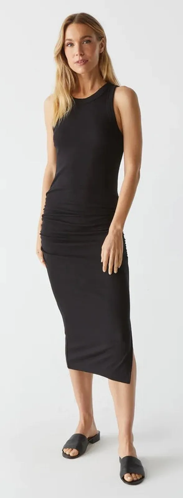 NEW! MICHAEL STARS Wren Ruched Midi Ultra Rib black bodycon dress small - $49 New With Tags - From kay