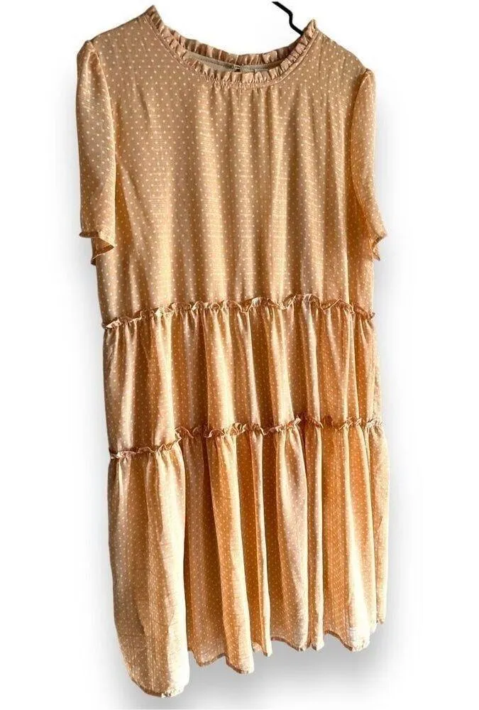 NEW Mimi & Daphne Orange Ruffle Tiered Polkadot Short Sleeve Dress sz XL Cottage New Without Tags!! Bundle and Save! 711 Cottagecore Feminine Dainty Flowy Southwestern Western Beach Cowgirl Beachy Fall Versatile Lightweight Chic Coquette Swing A-Line Round Neck Middi Knee Length