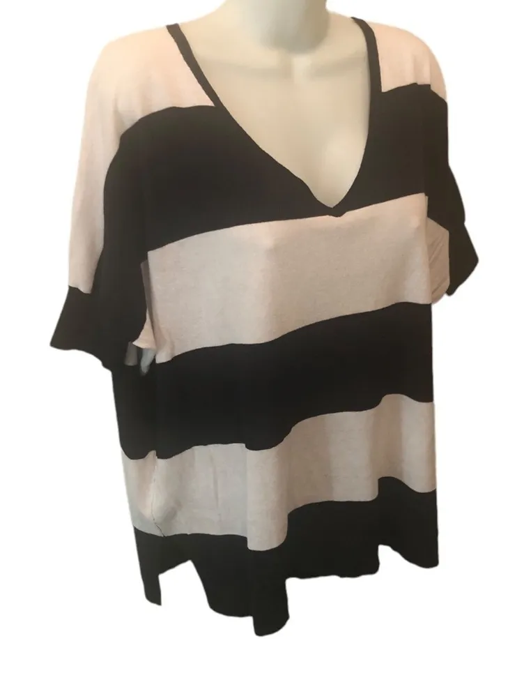 New Minnie Rose Saks Fifth Ave Striped Light V~Neck Sweater M/L Cotton Navy Size undefined - $70 New With Tags - From Christine