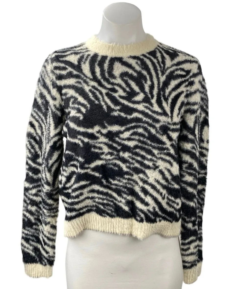 NEW MNG Women's Multicolor Zebra Animal Print Long Sleeve Crop Sweater Top Size M Size: M Condition... Show more