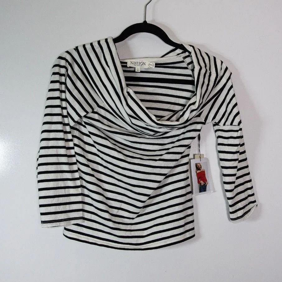 NEW Nation Los Angeles Alexi Organic Cotton Off The Shoulder Striped Tee Shirt S Form-fitting. Snug through the bust, waist, and hips. Contents: 100% Organic Cotton Fabric Weight: Lightweight Sheerness: Not sheer New with tags! [Csernnansky]