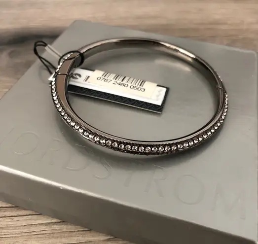 Brand new with tag and gift box. Light gunmetal silver color with crystals.