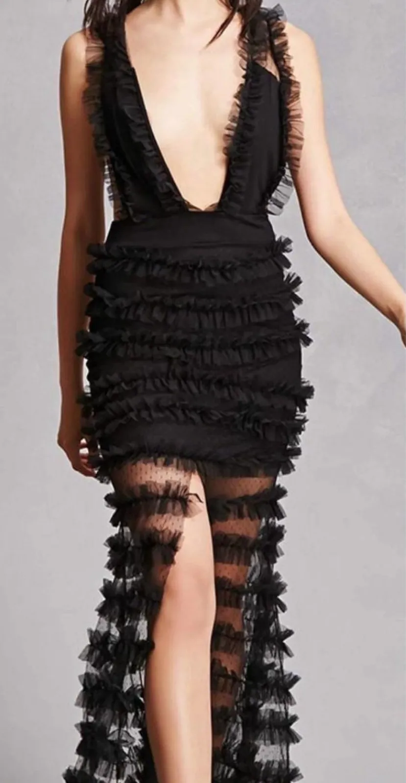 Measurements: • Pit to pit: 13" • Length: 65" Style: Maxi Dress Length: Long Department: Women Sleeve Length: Sleeveless Pattern: Solid Occasion: Party/Cocktail, Formal Material: Polyester Neckline: V-Neck Fabric Type: Tulle Season: Summer, Spring, Fall, Winter Sleeve Type: Strappy Sleeve Closure: Zip Keywords: Kiki Riki dress, Black maxi dress, Ruffle dress, Tulle dress, Sleeveless dress, Party dress, Cocktail dress, Formal dress, Special occasion dress, Evening gown, Women's dress, Medium dress, Black dress medium, Ruffle maxi dress, Tulle maxi dress * open to reasonable offers * ships next business day * pet-free and smoke-free home * all items washed, unless dry clean only or hand wash label. Please, wash to wear. * see pictures for details. Colors can vary on different devices.