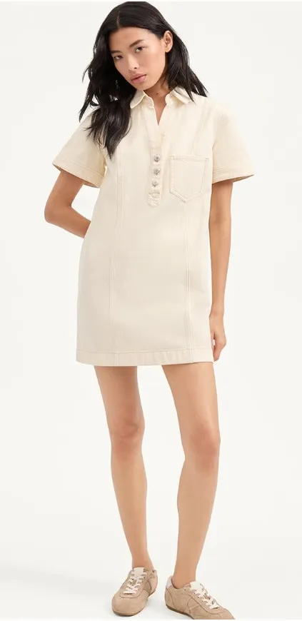 Utility Size 6/ Small MSRP $378 New with tags This Veronica Beard polo mini dress is crafted in structured ecru denim for a clean, modern look. Designed with a classic collar and button placket, it’s an effortless piece for casual days, travel, or elevated everyday wear. Features: Brand: Veronica Beard Women’s size 6 Ecru / cream denim fabric Polo-style collar Partial button-front placket Short sleeves Chest pocket detail Mini-length silhouette Measurements (Approximate, Laid Flat – Relaxed Boxy Fit) Pit to Pit: ~19.5″ Waist: ~18.5″ Hip: ~20.5″ Length (shoulder to hem): ~34.5″ Sleeve Length (shoulder to cuff): ~8.5″ Care & Fabric Notes: Cotton Machine wash Open to offers/bundles. All orders ship next business day. Questions/ comments welcome! veronica beard dress, denim mini dress, polo dress womens, ecru dress, casual chic dress, designer mini dress, utility style dress R4