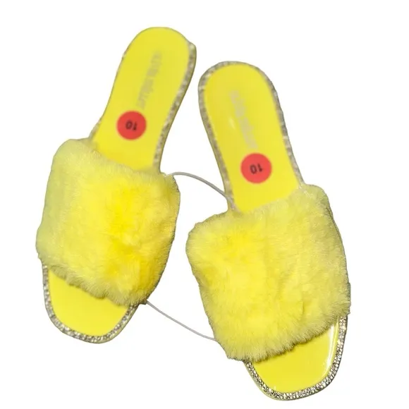 NEW Olivia Miller Faux Fur YellowRhinestone Studded Sandal Yellow Size 10 - $29 New With Tags - From Smriti
