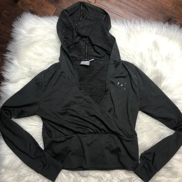 new without tags condition puma gray faux wrap cropped hoodie (it's more of a hooded long sleeve bc... Show more