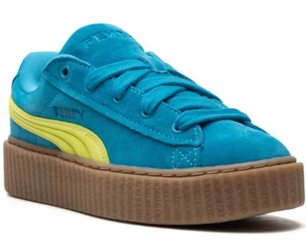 These Puma x Fenty collab sneakers boast a striking aqua/teal blue and yellow color combination, enh... Show more