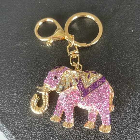 New Purple Bedazzled Crystal Elephant w Lucky Trunk Up Bag Charm Keychain - $33 New With Tags - From Barbara