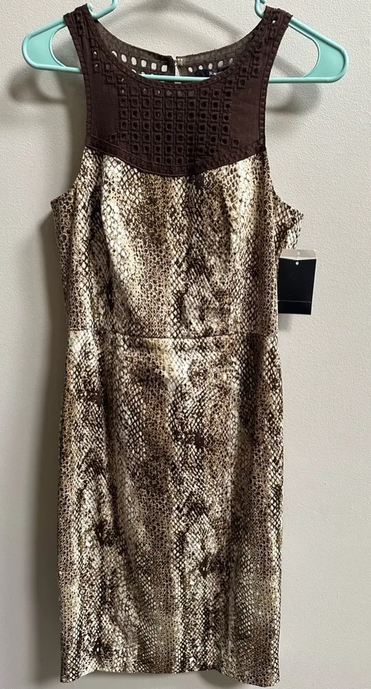 Rachel Roy Snake Print Crochet Bib Sheath Dress Brown NWT Size 2 New with tags and never worn, this... Show more