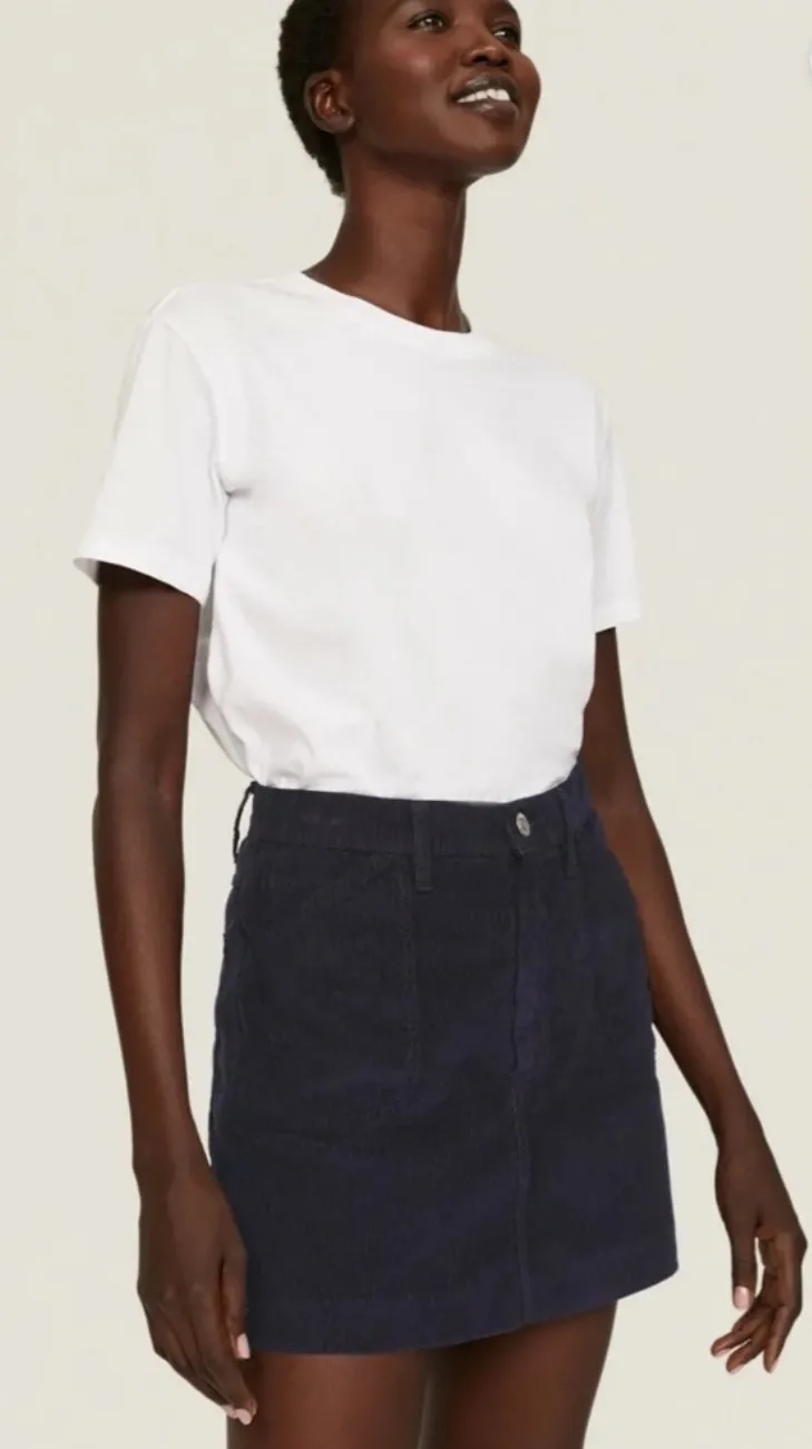 Re/Done's 70s miniskirt is made from dark blue cotton corduroy - a fabric that detined the decade. T... Show more