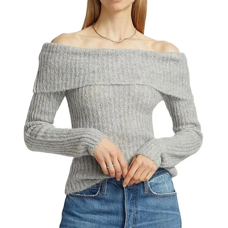 Reformation Oberon Off-the-Shoulder Sweater in Foggy Gray. Brand new with tags. Size Medium. Chest... Show more