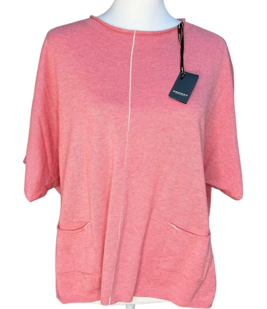 Luxury- MSRP $165 Size Small Condition Notes: New with original tags attached. No flaws noted. This Repeat knit pullover top features a luxurious cotton and cashmere blend in a soft coral hue with a relaxed, modern silhouette. Designed with front pockets and lightweight knit texture, it delivers effortless elevated comfort. Features: Authentic Repeat luxury knitwear Cotton and cashmere blend fabric Relaxed pullover sweater top Short / elbow-length sleeves Crew neckline Front patch pockets Soft, lightweight, breathable knit Measurements (Approximate, Flat): Pit to pit 23.5” Shoulder to hem 23” Care & Fabric Notes: Cotton and Viscose Recommend gentle wash or dry clean to preserve fabric. repeat sweater, luxury knit top, cotton cashmere, coral sweater, womens pullover, minimalist luxury, relaxed fit knit, chic casual, elevated basics, designer knitwear Y2