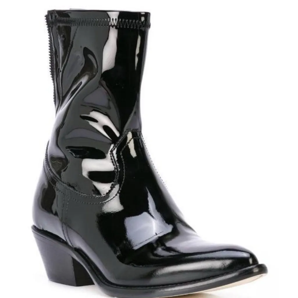 NEW RTA DENIM PATENT LEATHER ANKLE WESTERN BLACK BOOTS SZ 6.5 (37) Vero Cuoio - $375 - From Nina