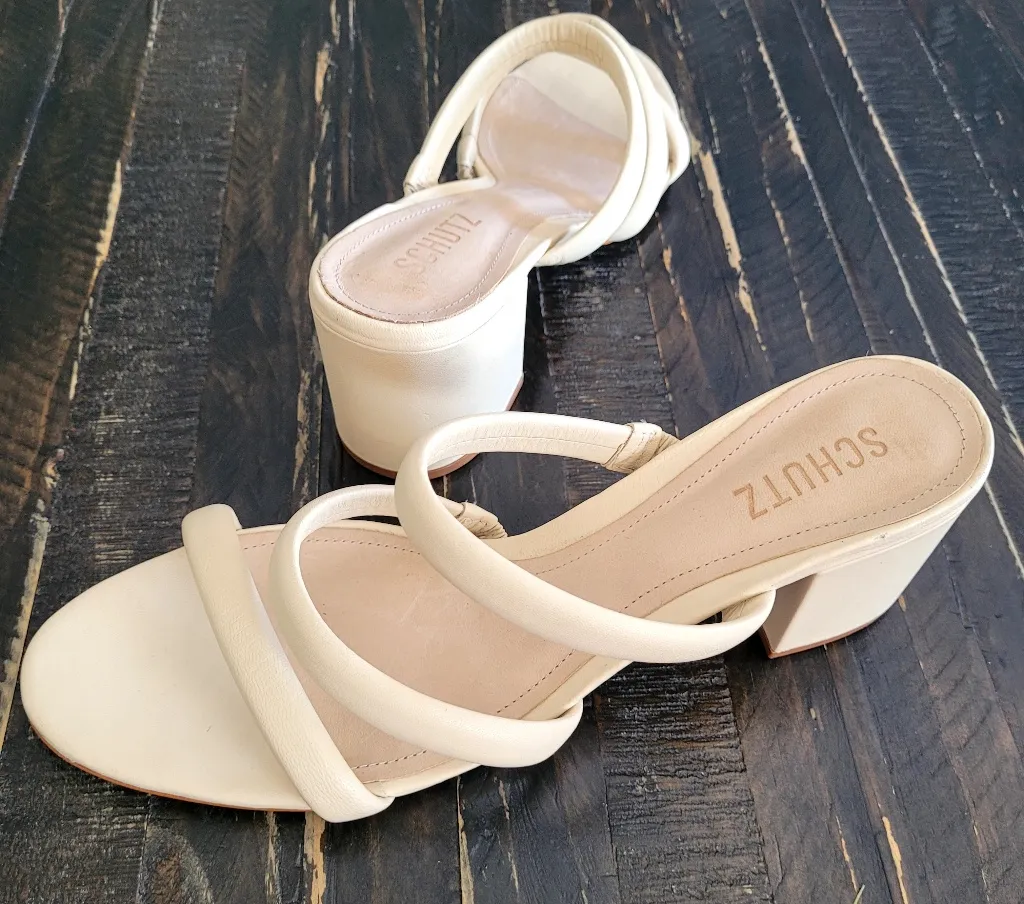 NEW Schutz Block Heel Strappy Slip On Sandals Ivory Cream Women's Size 11 - $59 - From US