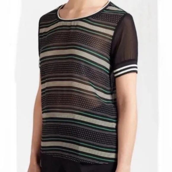 Scotch & Soda Maison Scotch A la Belle Etoile Semi Sheer Stripe Polka Dot Top NEW without tags Size 1 on MS chart is size 6 or Small/Medium see chart and measurements below Round neckline & striped ribbed Trim Polka dot and stripes Black, cream and green colors Excellent condition! Length approx 24" Pit to pit approx 20.5” would easily fit medium I ship daily B26