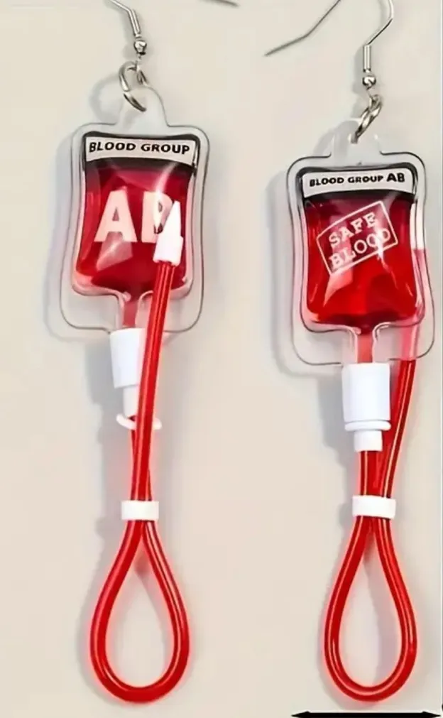 NEW. These 4" Vintage Blood Bag IV Earrings are a unique and bold accessory for women and girls. Made with clear plastic mini IV bags, these earrings feature a vintage blood bag design with a medical theme. The pin-through ear attachment ensures a secure fit, while the one-size design makes them versatile for anyone to wear. These earrings are a statement piece that adds a touch of outrageous funny personality to any outfit. *colors may vary due to lighting or viewing devices *Feel free to reach out with any Questions / Clarification or to request any additional photos. We are happy to help! *we will ship FAST and with care