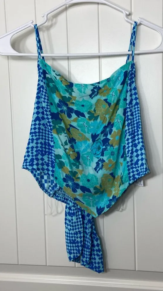 SO women’s blue cropped tank top blouse floral cute casual tied elastic Size medium Brand new with t... Show more