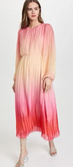 New Something Navy Maxi Dress Pleated Tie Waist Long Sleeve pink combo ombré M Orange Size M - $57 - From D