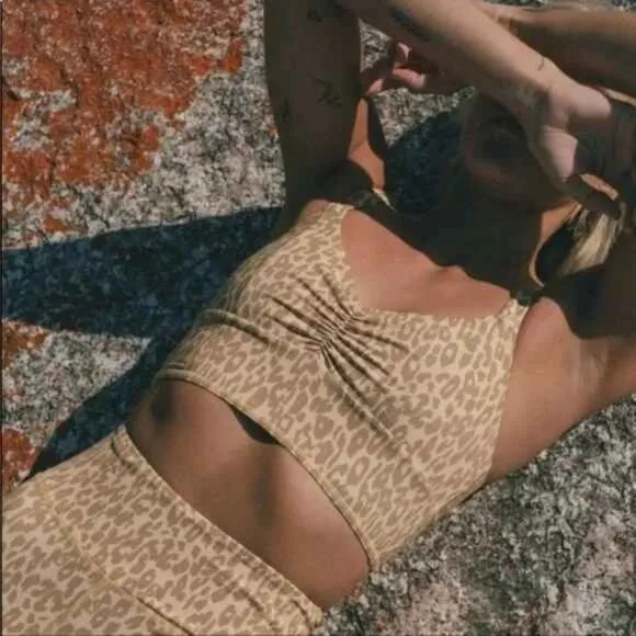 New Spell and The Gypsy Collective Wild Thing Active Crop Sports Bra Size Medium New without tag Model photo added to show fit actual color is the other photos This rockin Wild Thing Crop with its ruching and panel line at the bust, is an easy-wear workout top, designed to add a touch of wild abandon to any fitness foray. Featuring the chic Wild Thing, cheetah print in a classic tone, this feisty crop will add some jungle-goddess vibes to any gym session, morning stroll or high intensity workout.