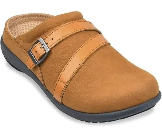 I absolutely LOVE these SHOES! Wish they were my size!!!! Spenco Orthotic grade arch support Full Contact Comfort footbed is compression molded EVA that conforms to the feet to provide an unmatched level of orthotic support. Cushioned EVA midsole Non-marking and non-slip rubber outsole provides grip and support. Nubuck Leather Upper Orthopedic Cognac Brown Size 6 B US The color will match almost any color When your office days call for a more casual look, these mules combine a classic profile with orthotic arch support so you can comfortably navigate between your commute to your cubicle to conference rooms in style. Welcome this mule into your wardrobe for effortless style. The Sydney Slide is a brand new version of the classic Siesta Slide. This Nubuck leather slide is a perfect transition shoe as we head into the Fall season. Like all Spenco Footwear, the Total Support Footbed gives an unmatched level of comfort and support. Beautiful classic look. Great with jeans, dresses, shorts, skirts, or whatever you like! MSRP $90