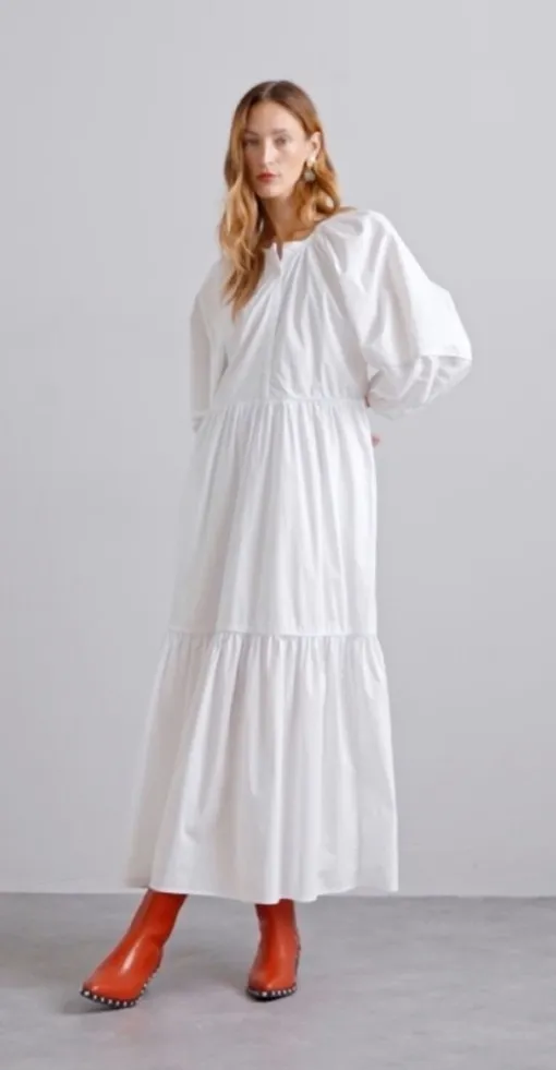 This stunning white sundress by STAUD features a tiered design with a flattering v-neckline and eleg... Show more