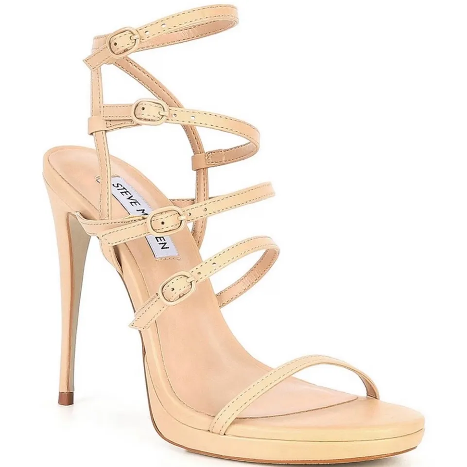 Colorful buckled straps set off sleek stiletto heels in the gorgeous Jubilant sandals from Steve Mad... Show more