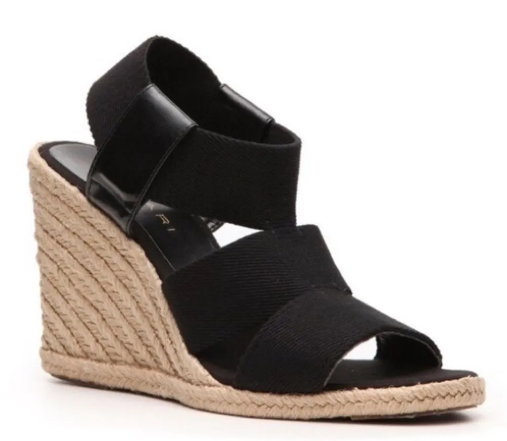 NEW Tahari Wiley Caged Stretch Espadrille Wedge Sandal Size 10 * New without box Details: - trendy espadrille wedge sandals - elastic strap with great stretch & recovery - lightweight & comfortable shoe - synthetic sole - 4" wedge heel with braided rope detail - dress up or wear casually - looks great paired with skirt, leggings, linen pants or jeans boho bohemian hippie festival summer