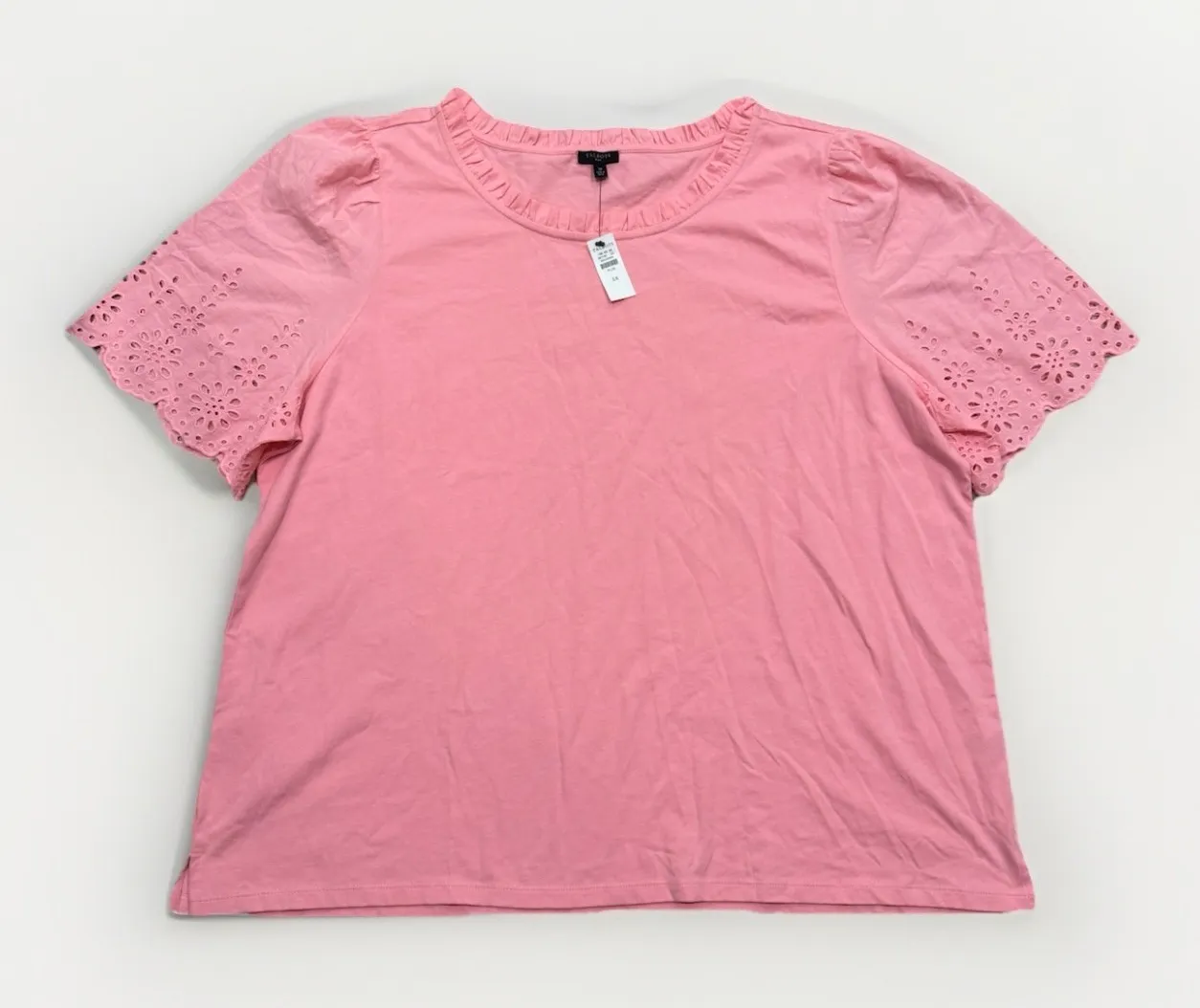 Add a touch of femininity to your wardrobe with this new Talbots 3X top. The pink color gives it a s... Show more